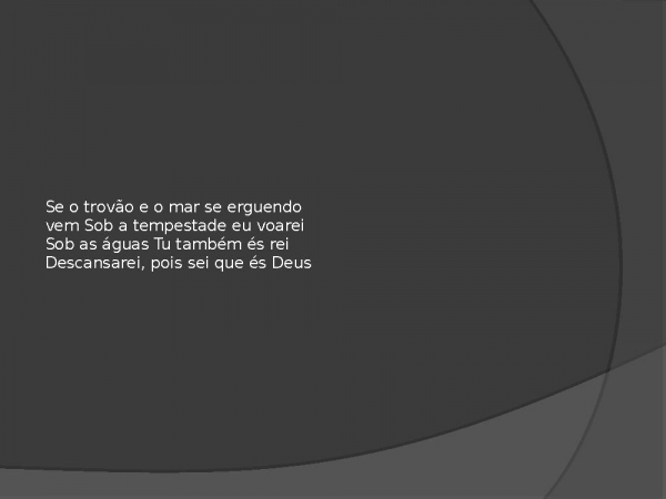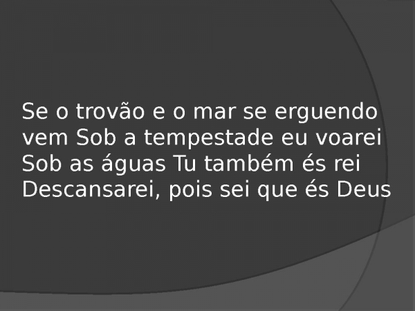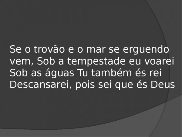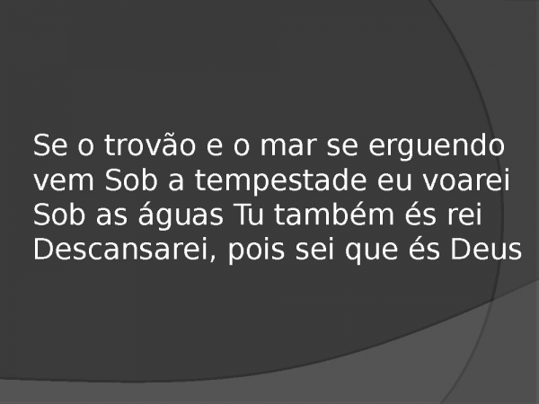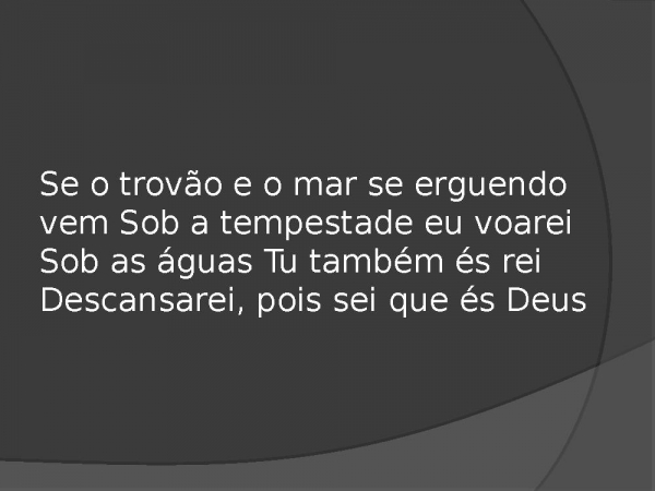 - Se o trovão e o mar se erguendo vem, Sob a tempestade eu voareiSob as águas Tu também és reiDescansarei, pois sei que és Deus