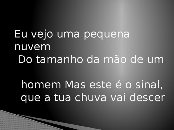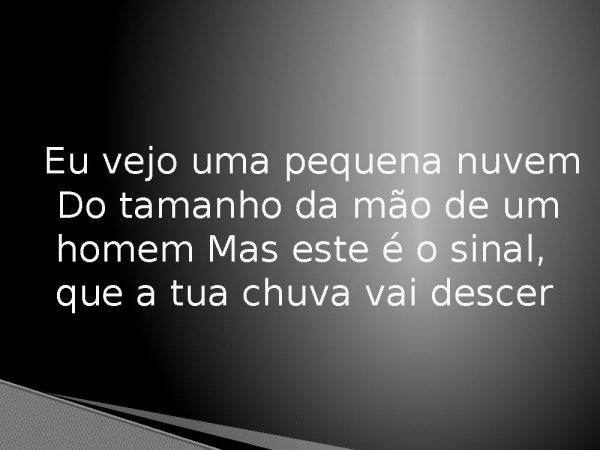 - Eu vejo uma pequena nuvem Do tamanho da mão de um homem Mas este é o sinal, que a tua chuva vai descer