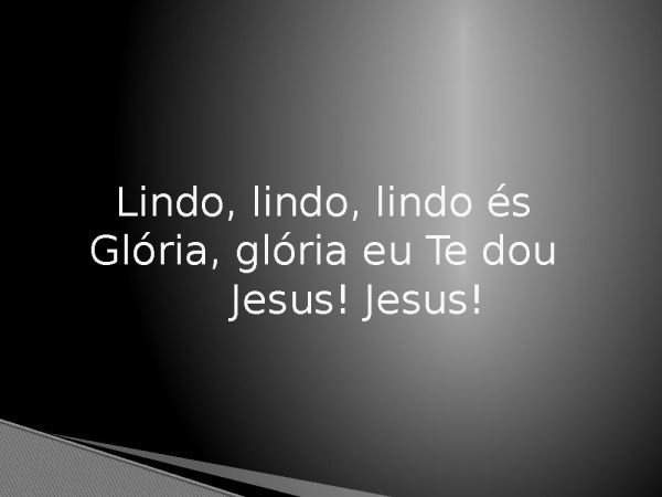 - Lindo, lindo, lindo ésGlória, glória eu Te dou Jesus! Jesus!