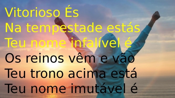 - Vitorioso ÉsNa tempestade estásTeu nome infalível éOs reinos vêm e vãoTeu trono acima estáTeu nome imutável é