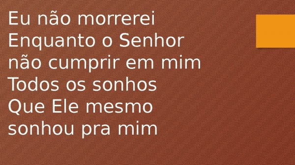 - Eu não morrereiEnquanto o Senhor não cumprir em mimTodos os sonhosQue Ele mesmo sonhou pra mim