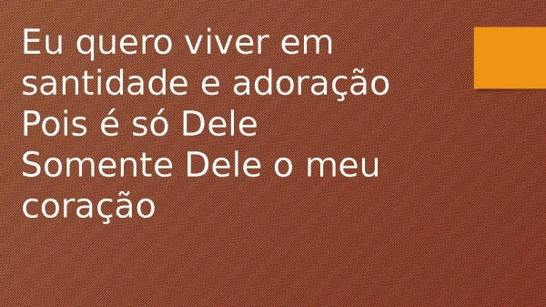 - Eu quero viver em santidade e adoraçãoPois é só DeleSomente Dele o meu coração