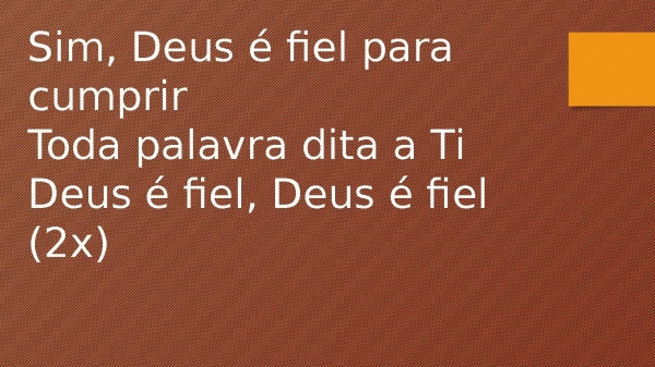 - Sim, Deus é fiel para cumprirToda palavra dita a mimDeus é fiel, Deus é fiel (2x)