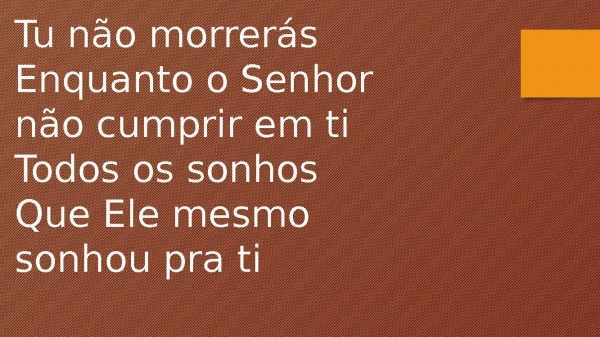 - Tu não morrerásEnquanto o Senhor não cumprir em tiTodos os sonhosQue Ele mesmo sonhou pra ti