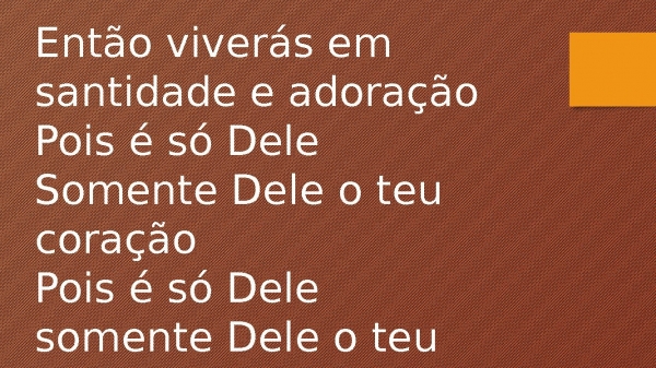 - Então viverás em santidade e adoraçãoPois é só DeleSomente Dele o teu coraçãoPois é só Dele somente Dele o teu coração