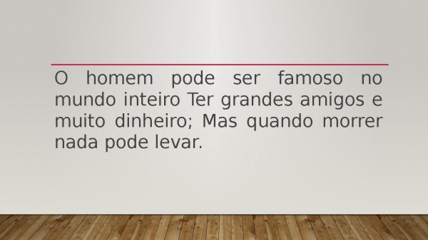 - O homem pode ser famoso no mundo inteiro Ter grandes amigos e muito dinheiro; Mas quando morrer nada pode levar.