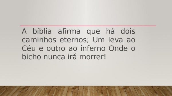 - A bíblia afirma que há dois caminhos eternos; Um leva ao Céu e outro ao inferno Onde o bicho nunca irá morrer!