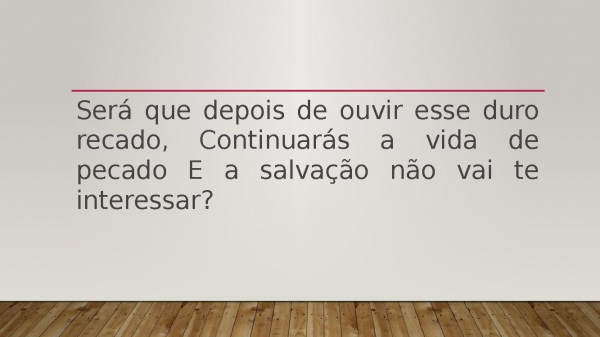 - Será que depois de ouvir esse duro recado, Continuarás a vida de pecado E a salvação não vai te interessar?