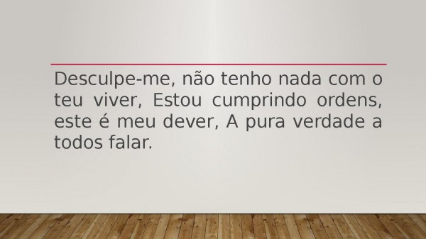 - Desculpe-me, não tenho nada com o teu viver, Estou cumprindo ordens, este é meu dever, A pura verdade a todos falar.