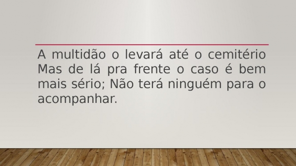 - A multidão o levará até o cemitério Mas de lá pra frente o caso é bem mais sério; Não terá ninguém para o acompanhar.