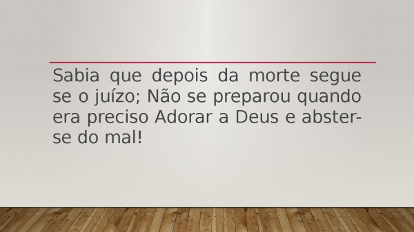 - Sabia que depois da morte segue se o juízo; Não se preparou quando era preciso Adorar a Deus e abster-se do mal!