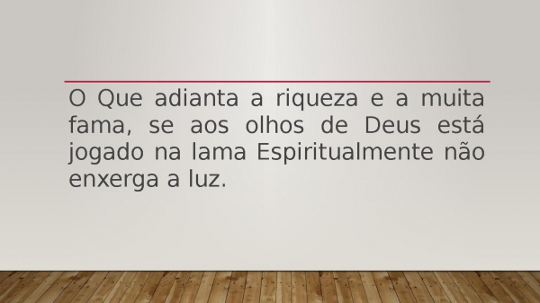- O Que adianta a riqueza e a muita fama, se aos olhos de Deus está jogado na lama Espiritualmente não enxerga a luz.