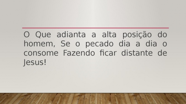 - O Que adianta a alta posição do homem, Se o pecado dia a dia o consome Fazendo ficar distante de Jesus!