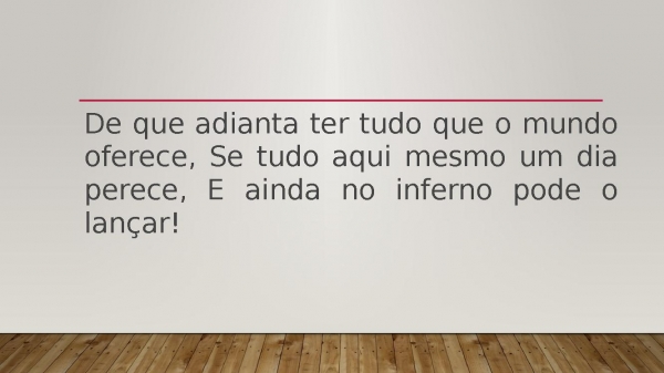 - De que adianta ter tudo que o mundo oferece, Se tudo aqui mesmo um dia perece, E ainda no inferno pode o lançar!