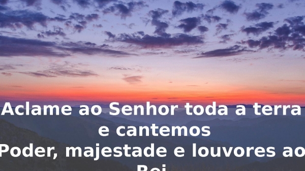 - Aclame ao Senhor toda a terra e cantemosPoder, majestade e louvores ao Rei