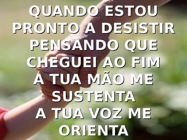 - QUANDO ESTOU PRONTO A DESISTIRPENSANDO QUE CHEGUEI AO FIMA TUA MÃO ME SUSTENTAA TUA VOZ ME ORIENTA