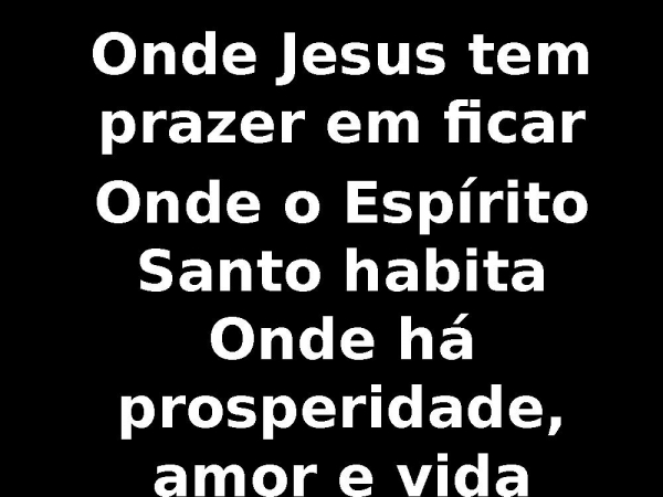- Onde Jesus tem prazer em ficarOnde o Espírito Santo habitaOnde há prosperidade, amor e vida