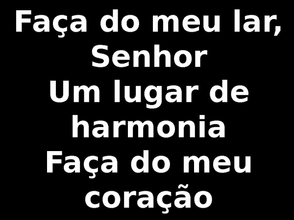 - Faça do meu lar, SenhorUm lugar de harmoniaFaça do meu coraçãoTua casa todo dia