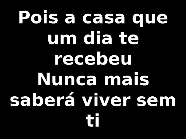 - Pois a casa que um dia te recebeuNunca mais saberá viver sem ti