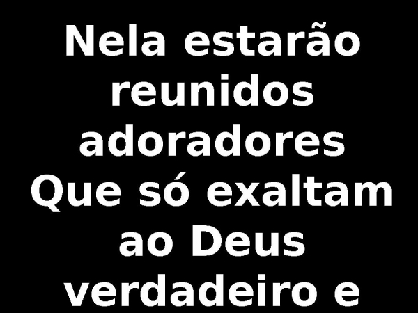 - Nela estarão reunidos adoradoresQue só exaltam ao Deus verdadeiro e fiel