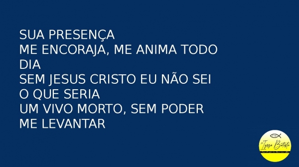 - Sua presençaMe encoraja, me anima todo diaSem Jesus Cristo eu não sei o que seriaUm vivo morto, sem poder me levantar