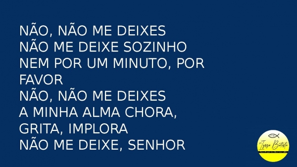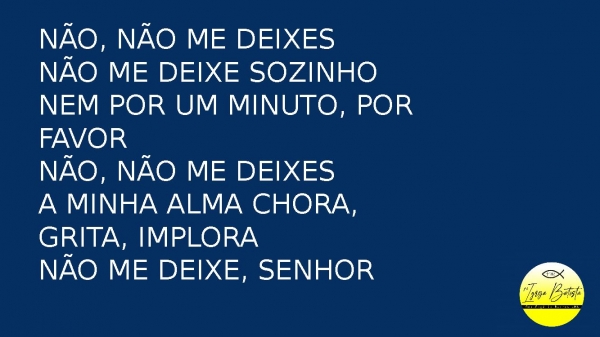 - Não, não me deixesNão me deixe sozinhoNem por um minuto, por favorNão, não me deixesA minha alma chora, grita, imploraNão me deixe, Senhor