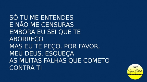 - Só tu me entendesE não me censurasEmbora eu sei que te aborreçoMas eu te peço, por favor, meu Deus, esqueçaAs muitas falhas que cometo contra ti