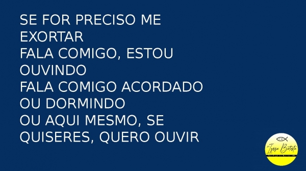 - Se for preciso me exortarFala comigo, estou ouvindoFala comigo acordado ou dormindoOu aqui mesmo, se quiseres, quero ouvir