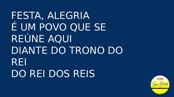 - Festa, alegriaÉ um povo que se reúne aquiDiante do trono do ReiDo Rei dos Reis