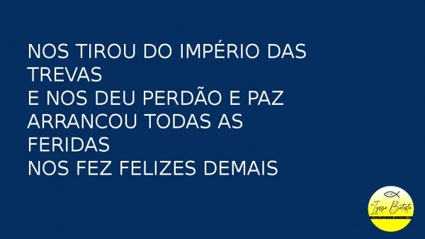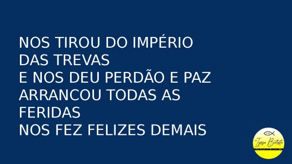 - Nos tirou do império das trevasE nos deu perdão e pazArrancou todas as feridasNos fez felizes demais