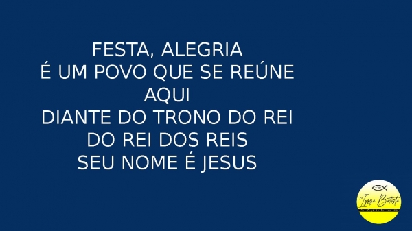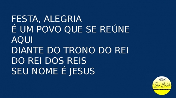 - Festa, alegriaÉ um povo que se reúne aquiDiante do trono do ReiDo Rei dos ReisSeu nome é Jesus