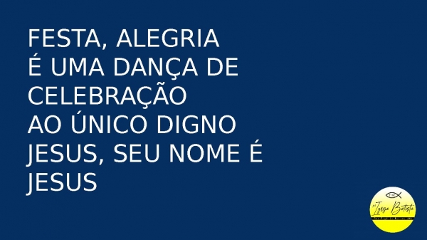 - Festa, alegriaÉ uma dança de celebraçãoAo único dignoJesus, seu nome é Jesus