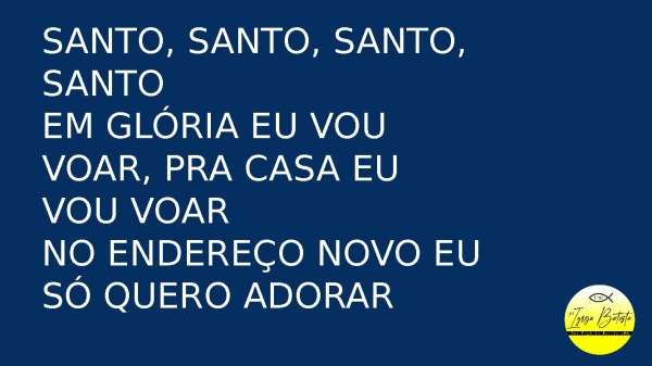 - Santo, Santo, Santo, SantoEm glória eu vou voar, pra casa eu vou voarNo endereço novo eu só quero adorar