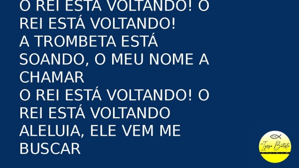 - O Rei está voltando! O Rei está voltando!A trombeta está soando, o meu nome a chamarO Rei está voltando! O Rei está voltandoAleluia, Ele vem me buscar