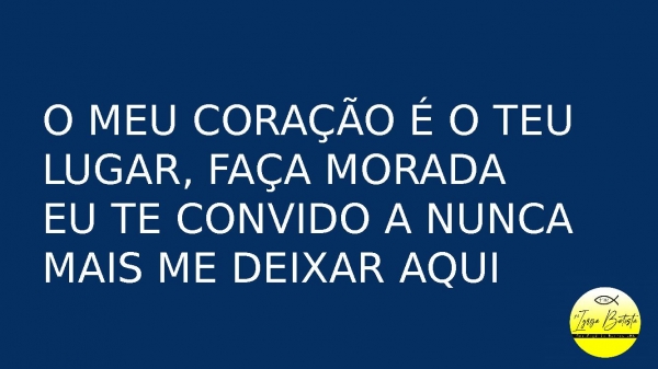 - O meu coração é o Teu lugar, faça moradaEu Te convido a nunca mais me deixar aqui