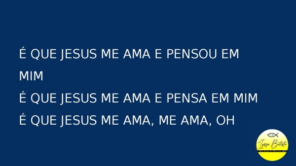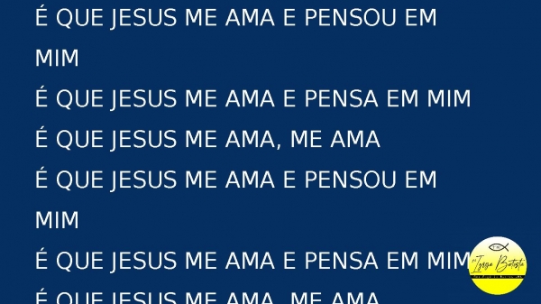 - É que Jesus me ama e pensou em mimÉ que Jesus me ama e pensa em mimÉ que Jesus me ama, me amaÉ que Jesus me ama e pensou em mimÉ que Jesus me ama e pensa em mimÉ que Jesus me ama, me ama