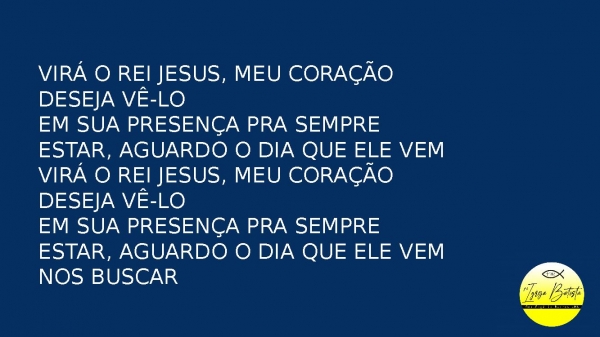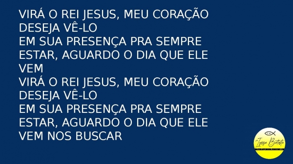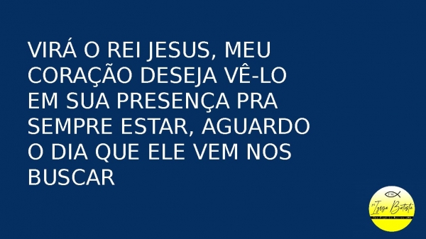 - Virá o rei Jesus, meu coração deseja vê-loEm sua presença pra sempre estar, aguardo o dia que Ele vem nos buscar