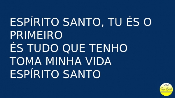 - Espírito Santo, tu és o primeiroÉs tudo que tenhoToma minha vidaEspírito Santo