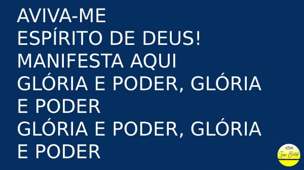 - Aviva-meEspírito de Deus!Manifesta aquiGlória e poder, Glória e poderGlória e poder, Glória e poder