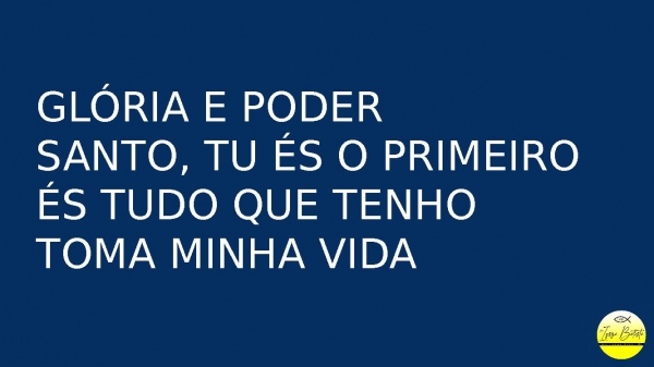- Glória e poderSanto, tu és o primeiroÉs tudo que tenhoToma minha vida