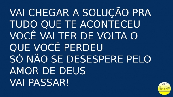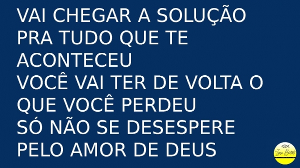 - Vai chegar a solução pra tudo que te aconteceuVocê vai ter de volta o que você perdeuSó não se desespere pelo amor de DeusVai passar!