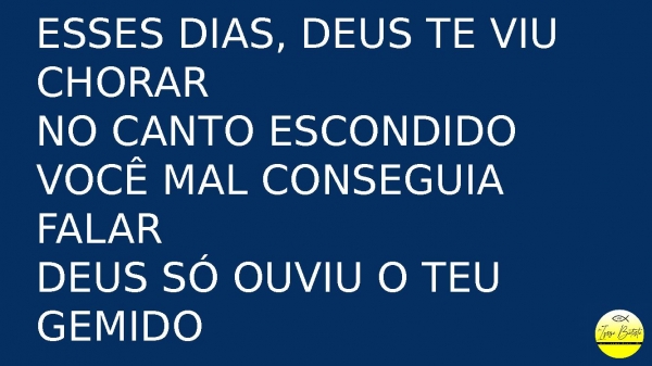 - Esses dias, Deus te viu chorarNo canto escondidoVocê mal conseguia falarDeus só ouviu o teu gemido