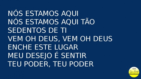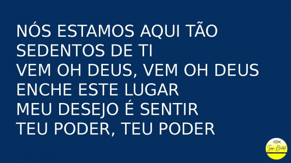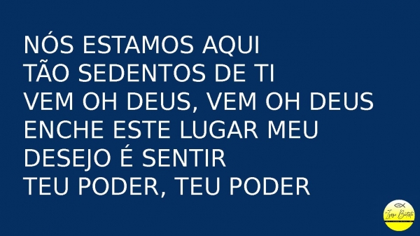 - Nós estamos aquiNós estamos aqui tão sedentos de tiVem oh deus, vem oh deusEnche este lugarMeu desejo é sentirTeu poder, teu poder