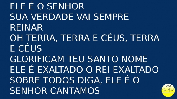 - Ele é o SenhorSua verdade vai sempre reinarOh terra, terra e céus, terra e céusGlorificam Teu santo nomeEle é exaltado o rei exaltadoSobre todos diga, ele é o Senhor cantamos
