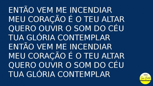 - Então vem me incendiarMeu coração é o teu altarQuero ouvir o som do céuTua glória contemplarEntão vem me incendiarMeu coração é o teu altarQuero ouvir o som do céuTua glória contemplar