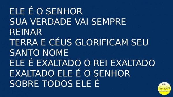 - Ele é o SenhorSua verdade vai sempre reinarTerra e céus glorificam seu santo nomeEle é exaltado o Rei exaltadoExaltado Ele é o SenhorSobre todos ele é