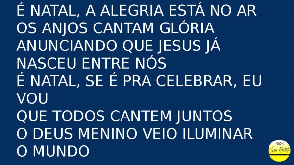 - É Natal, a alegria está no arOs anjos cantam glóriaAnunciando que Jesus já nasceu entre nósÉ Natal, se é pra celebrar, eu vouQue todos cantem juntosO Deus menino veio iluminar o mundo