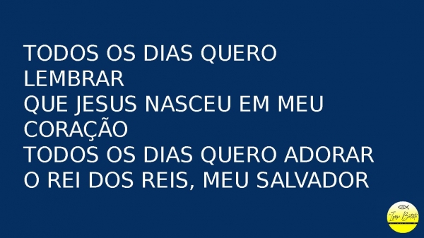 - Todos os dias quero lembrarQue Jesus nasceu em meu coraçãoTodos os dias quero adorarO Rei dos Reis, meu salvador