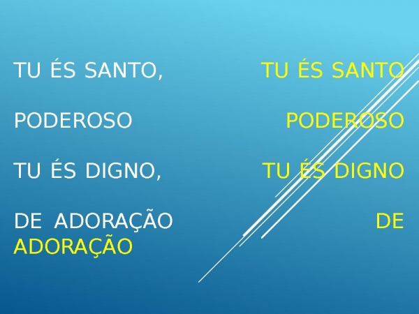 - Tu és Santo, Tu és Santo Poderoso Poderoso Tu és digno, Tu és digno De adoração De adoração