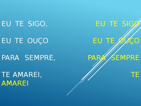 - Eu te sigo, Eu te sigo Eu te ouço Eu te ouço Para sempre, Para sempre Te amarei, Te amarei